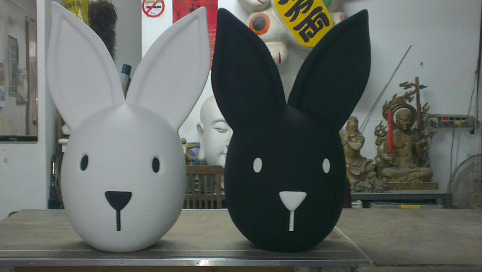 保麗龍雕塑,佈置陳列,FRP道具製作,櫥窗,立體造型,記者會活動道具 0937249884 黑白兔~~人穿偶 |